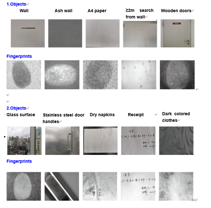 | Real-time image enhancement processing | Provide real-time background interference deduction function when taking fingerprint material evidence. |